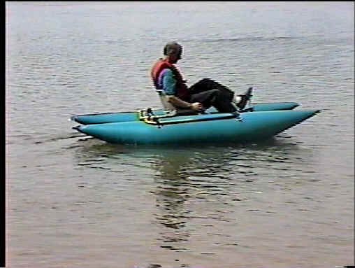 how the backrest is used to steer the hinged hulls - no rudder! |